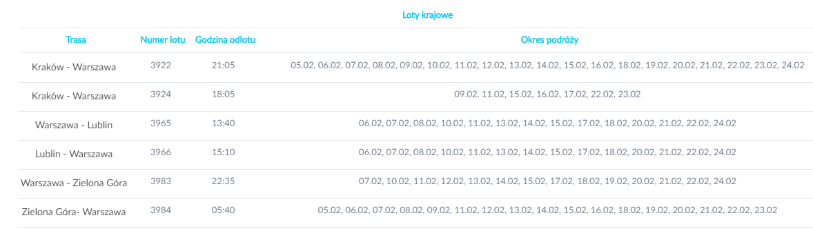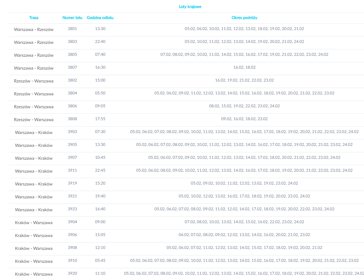 Rzeszów, Kraków, Lublin, Warszawa, Zielona Góra